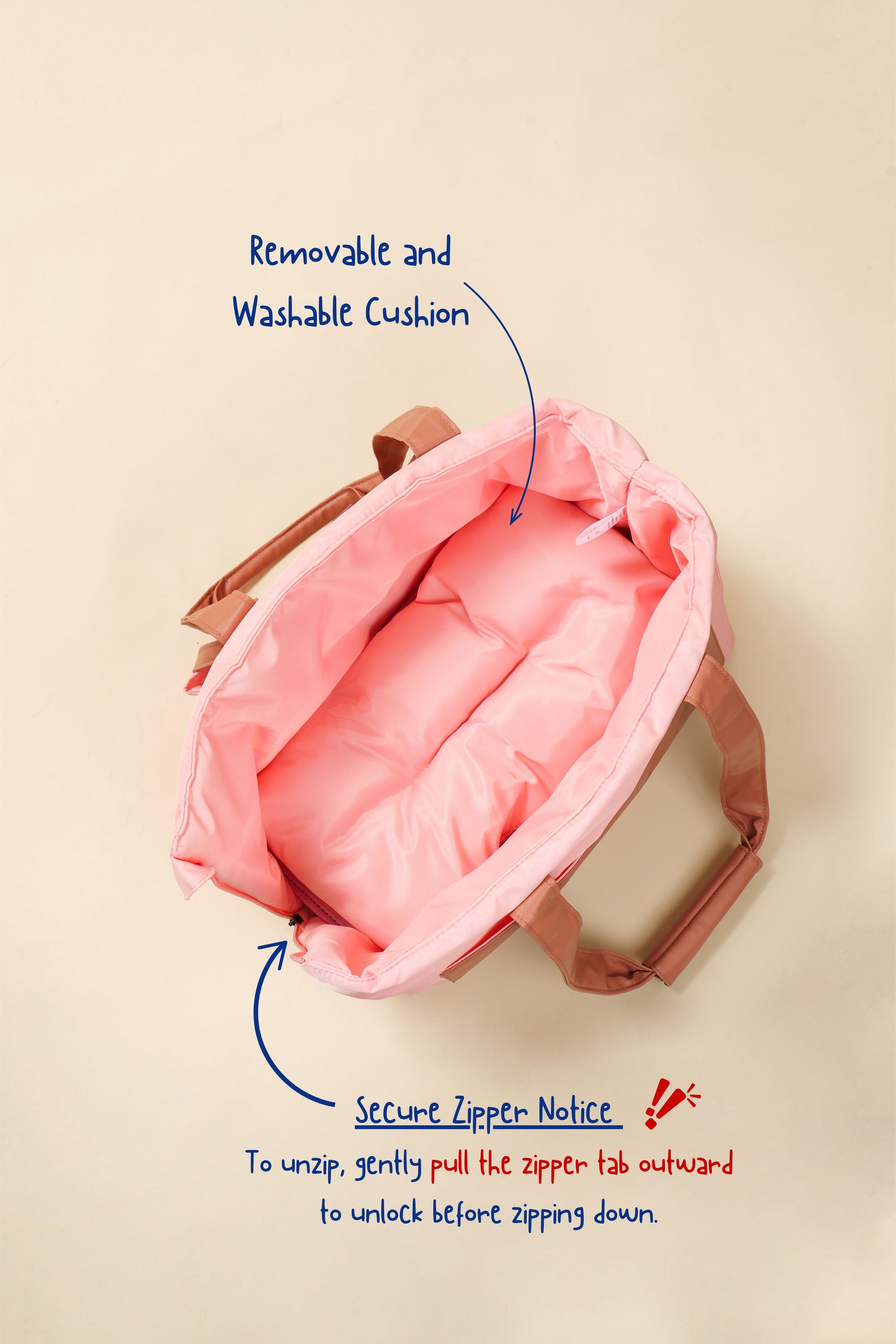 Special Notice: To unzip, gently pull the zipper tab outward to unlock before zipping down.