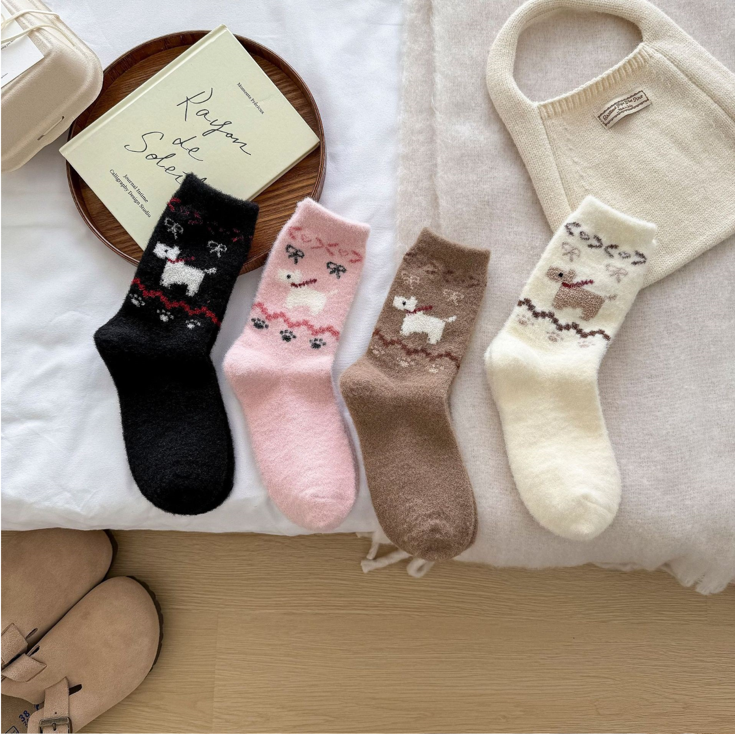 Step into a world of comfort and charm with our Whimsical Wooly Paws Socks! This delightful set of four features playful animal designs and soft, pastel-inspired hues to add a cozy yet stylish flair to your wardrobe. Made from premium, plush fabric, these socks are perfect for lounging or pairing with your favorite casual outfits. Each pair showcases a unique motif, making this set a versatile and adorable choice for animal lovers or anyone who loves snuggly vibes. Stay warm, stay cute, and keep every step lighthearted!
